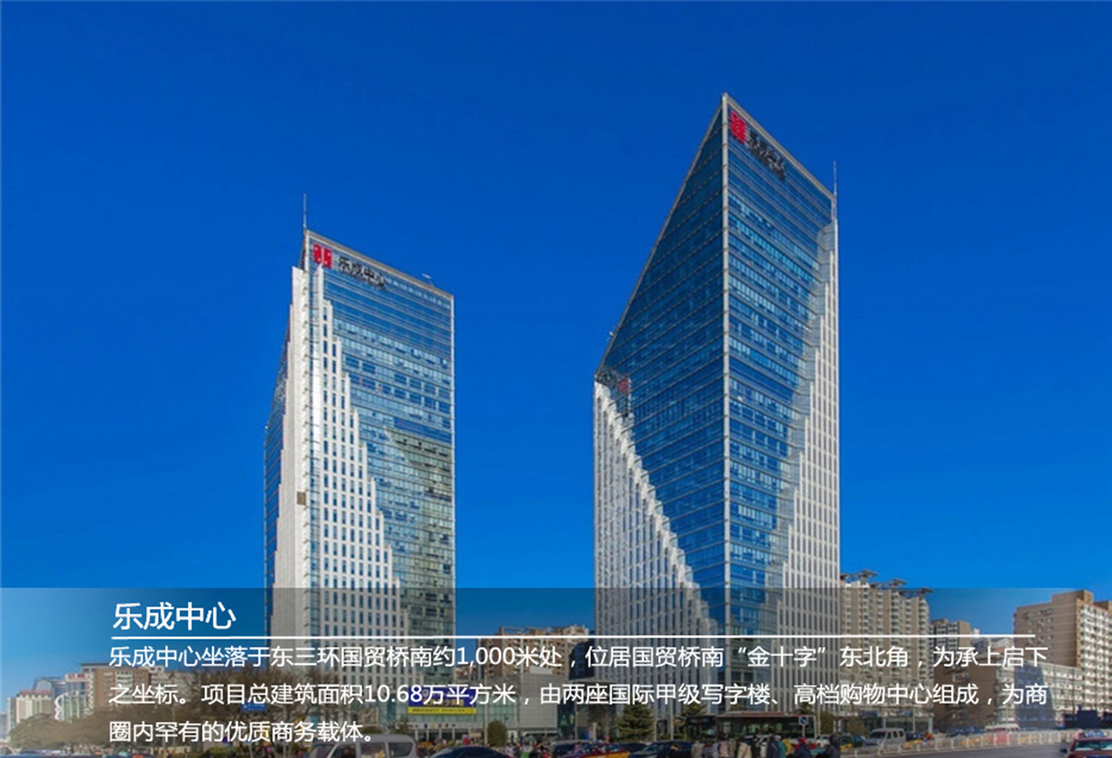 北京樂(lè)成中心 位于東三環(huán)、廣渠路黃金交匯處——雙井橋東北角,距CBD的核心建筑國(guó)貿(mào)中心僅1000米,并與地鐵十號(hào)線直接聯(lián)通,與中關(guān)村、亞奧商圈、國(guó)貿(mào)商圈等重要商務(wù)結(jié)集地對(duì)接。為單一產(chǎn)權(quán)優(yōu)質(zhì)寫(xiě)字樓,立面材質(zhì)與國(guó)貿(mào)同級(jí),甲級(jí)硬件標(biāo)準(zhǔn)與高端商務(wù)形象相得益彰。頂層挑高19米的空中會(huì)所,可鳥(niǎo)瞰CBD,縱攬全球商務(wù)大勢(shì)。