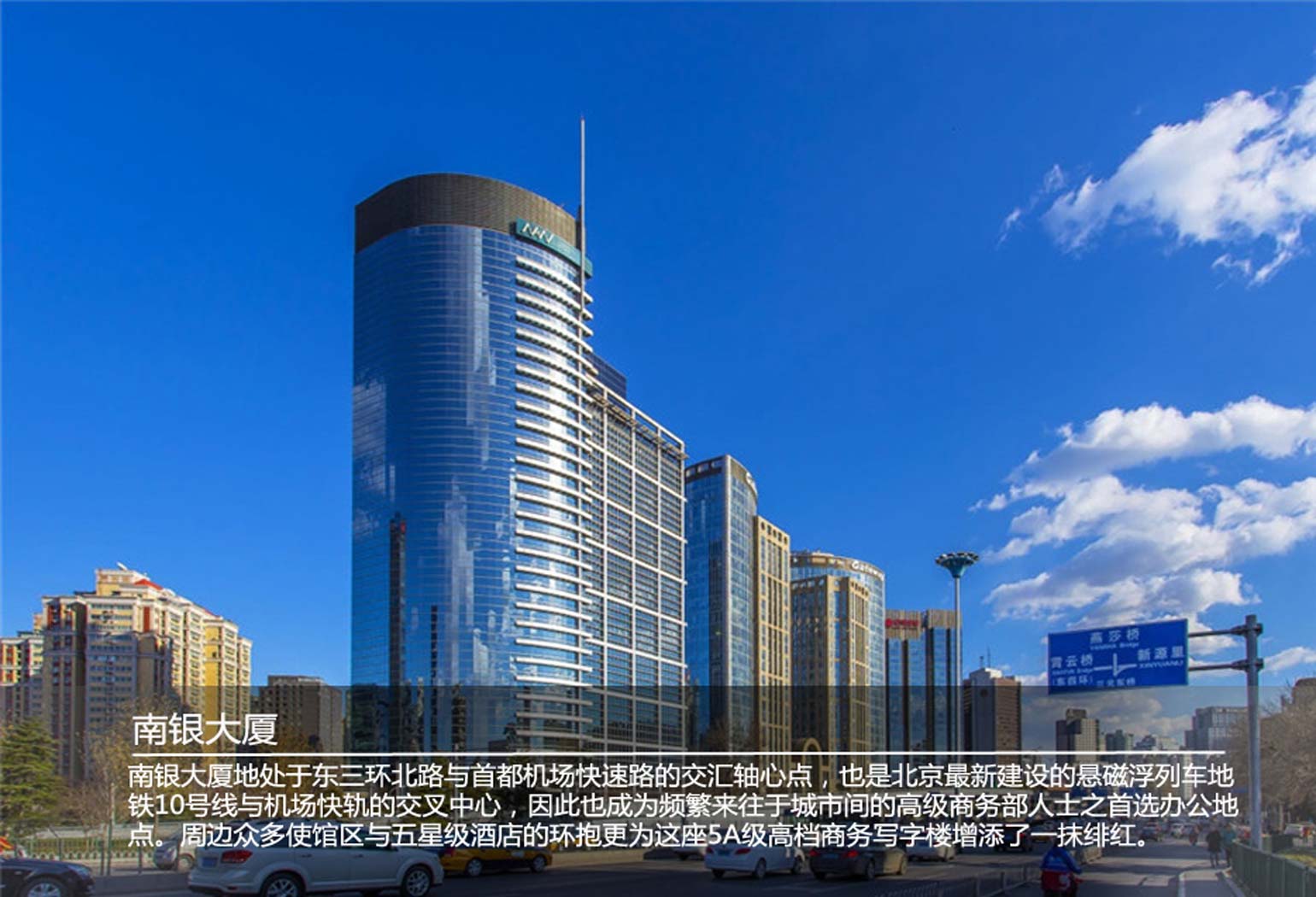 南銀大廈位于北京市朝陽區(qū)東三環(huán)北路2號(hào),周邊高級(jí)酒店、購物中心及新型商業(yè)大廈林立,近臨使館區(qū),南銀大廈設(shè)計(jì)結(jié)合了高科技與環(huán)保意念,弧形幕墻配合流體力學(xué)理,與環(huán)境互相呼應(yīng)。大廈西南面,每層外墻設(shè)置遮陽結(jié)構(gòu),大節(jié)省能源,且頂部裝置太陽能吸熱板,吸納天然能源,是現(xiàn)今“綠色建筑”的體現(xiàn)南銀大廈設(shè)計(jì)致力于提高綠化范圍,覆蓋率達(dá)32%,使用戶似置身于綠園之中,倍感身心舒暢。