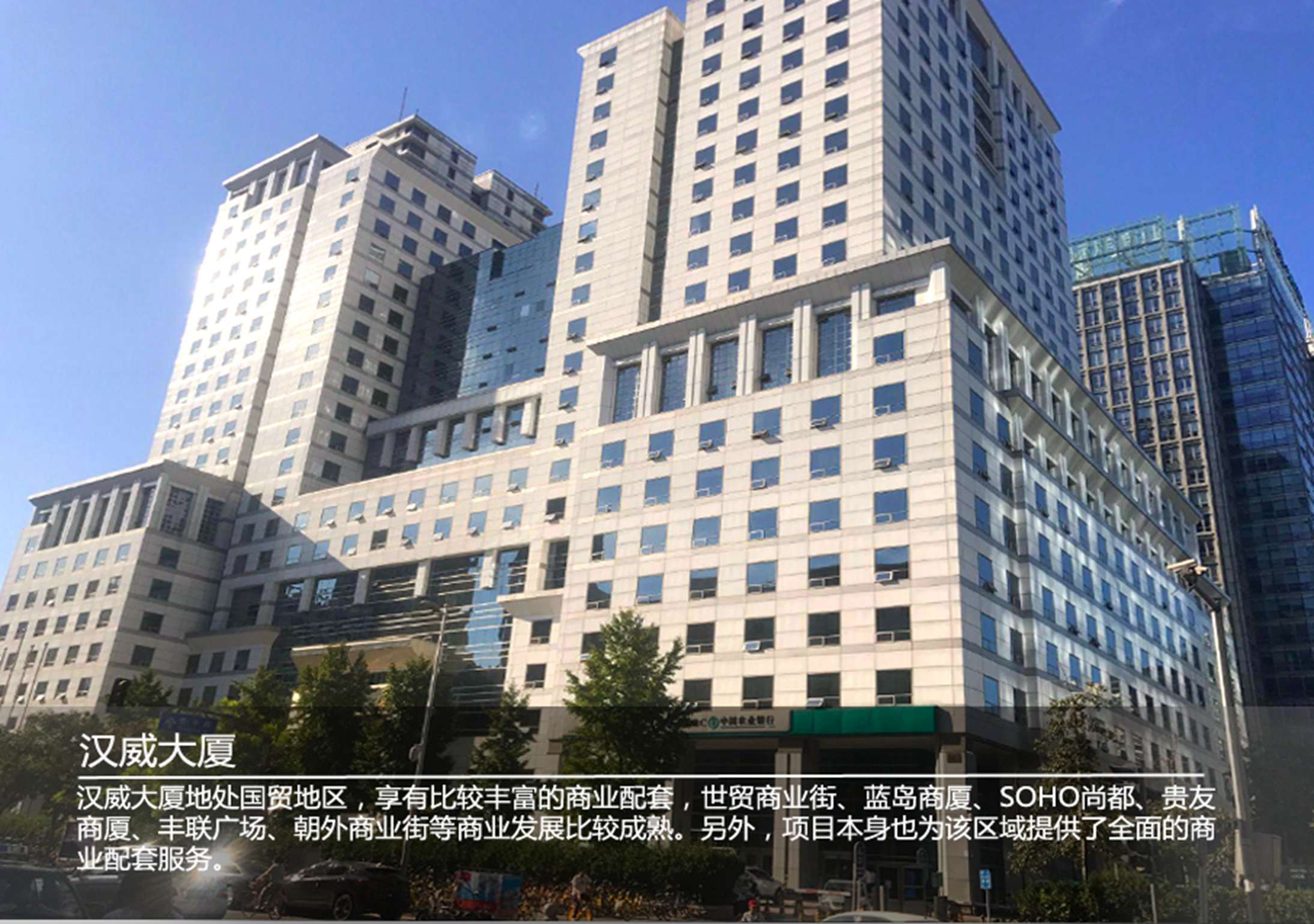 漢威大廈是由北京漢威廣場物業(yè)開發(fā)有限公司、香港AGK公司共同開發(fā)的一座綜合型辦公寫字樓,大廈總建筑面積14,800平方米,標寫字樓出租開間面積為894平方米,整層面積3000平方米 ,共28層,凈層高2.8米。大廈提供多種戶型的辦公間可供選擇,漢威大廈本身具備極高的品質(zhì),能夠滿足不同客戶的實際需求,商務(wù)設(shè)施齊全。