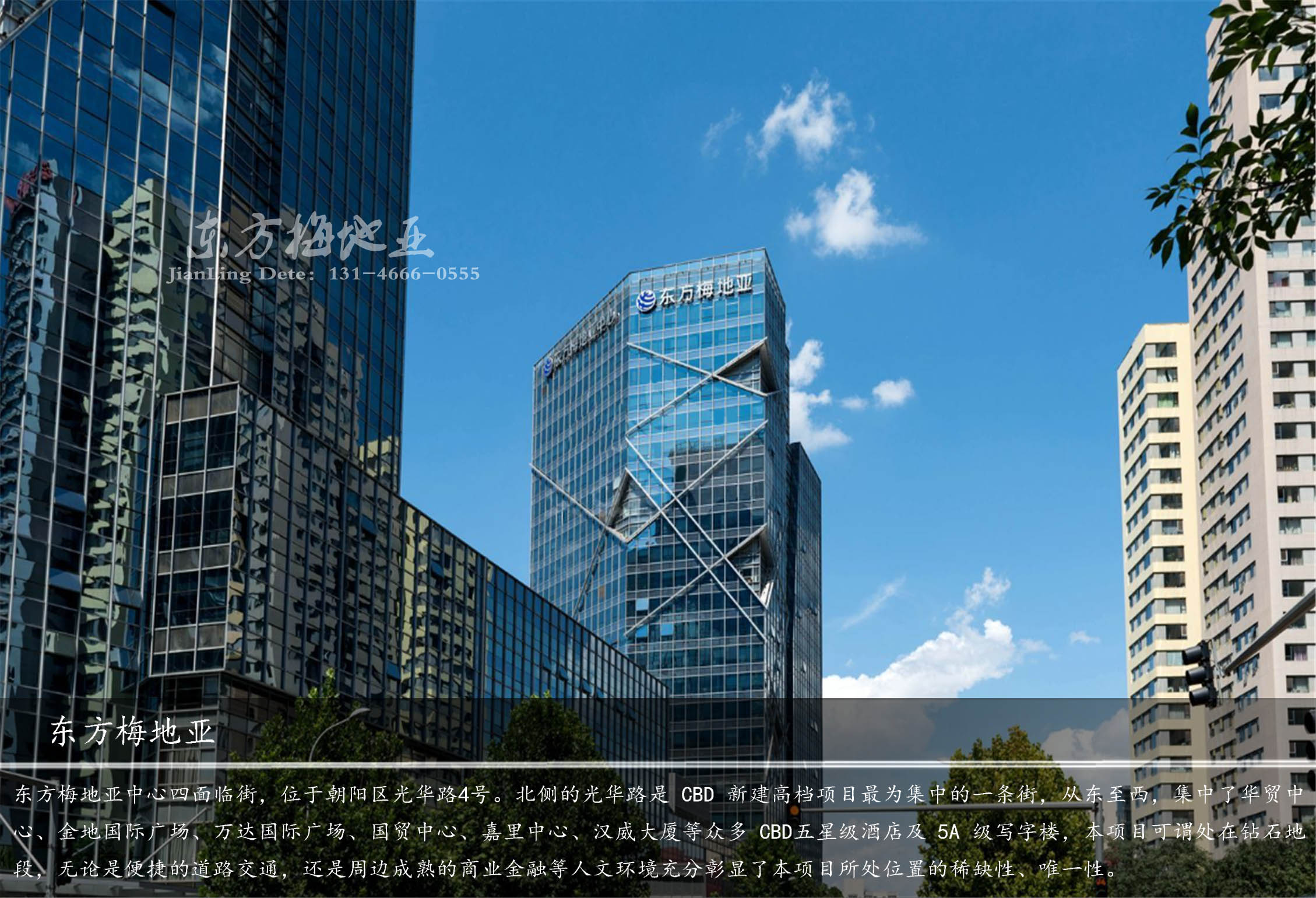 東方梅地亞中心四面臨街,北側(cè)的光華路是CBD新建高檔項(xiàng)目集中的一條街,從東至西,集中了華貿(mào)中心、藍(lán)堡國(guó)際公寓、陽(yáng)光 100 公寓、金地國(guó)際廣場(chǎng)、萬(wàn)達(dá)國(guó)際廣場(chǎng)、國(guó)貿(mào)中心、嘉里中心、漢威大廈等眾多CBD公寓、超五星級(jí)酒店、國(guó)際商業(yè)中心以及 5A 級(jí)寫(xiě)字樓,尤其是在建的新央視大樓與本項(xiàng)目?jī)H一路之隔,未來(lái)更是為此區(qū)域注入全新的視覺(jué)地標(biāo)元素,使其越發(fā)成為北京乃至全中國(guó)炙手可熱的傳媒文化商務(wù)區(qū)。本項(xiàng)目可謂處在鉆石地段,無(wú)論是便捷的道路交通,還是周邊成熟的商業(yè)金融等人文環(huán)境,以及越來(lái)越多世界五百?gòu)?qiáng)企業(yè)的入駐等等。