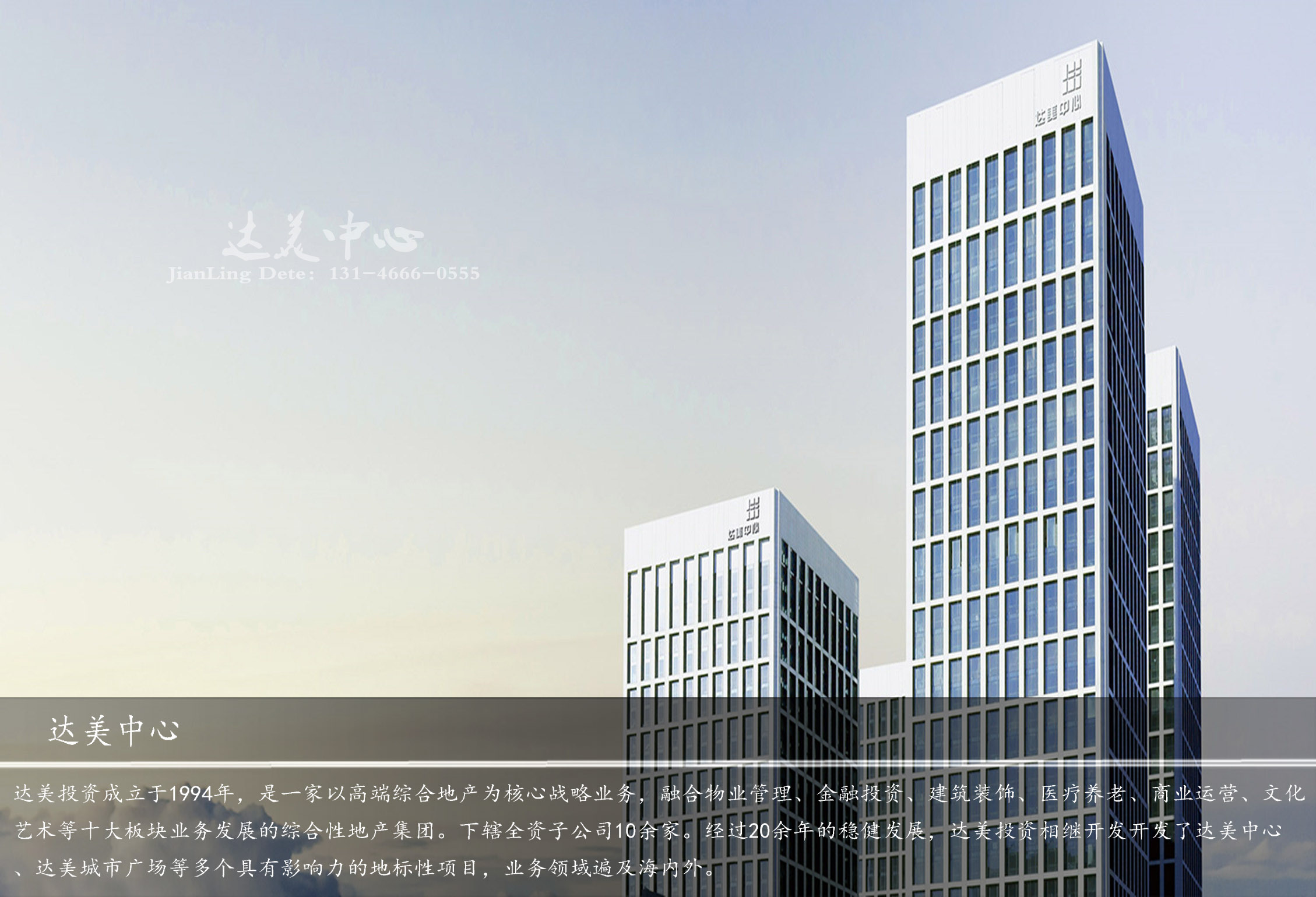 達美投資成立于1994年的北京達美投資有限公司,是一家以高端綜合地產(chǎn)為核心戰(zhàn)略業(yè)務,融合物業(yè)管理、金融投資、建筑裝飾、醫(yī)療養(yǎng)老、商業(yè)運營、文化藝術(shù)等十大板塊業(yè)務發(fā)展的綜合性地產(chǎn)集團。下轄全資子公司10余家。經(jīng)過20余年的穩(wěn)健發(fā)展,達美投資相繼開發(fā)開發(fā)了達美中心、達美城市廣場等多個具有影響力的地標性項目,業(yè)務領(lǐng)域遍及海內(nèi)外。同時具備投資規(guī)劃、開發(fā)建設(shè)、商業(yè)管理以及物業(yè)服務在內(nèi)的地產(chǎn)全過程運作能力。達美中心萃并東西,以藝術(shù)與商務為核心,打造35萬平米高端藝術(shù)綜合體,匯聚5A寫字樓、精品商業(yè)、GALLERY劇場、美術(shù)館、酒店公寓、藝術(shù)品商店、云端官邸、空中花園等眾多業(yè)態(tài),成為北京東部首屈一指的地標建筑。